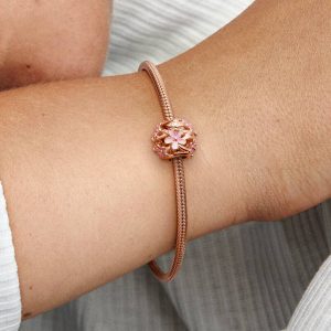 Openwork Pink Daisy Flower Charm | Rose gold plated