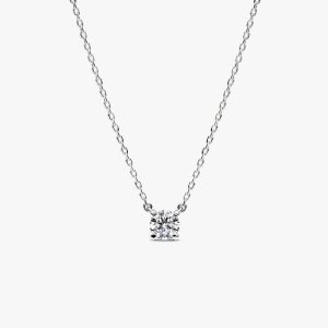 brand Era Bezel Sterling Silver Lab-grown Diamond Pendant Necklace | Sterling silver