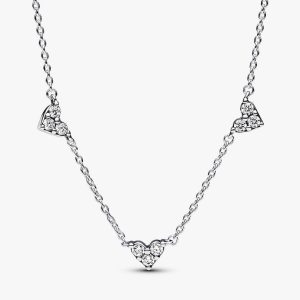 Triple Stone Heart Collier Necklace | Sterling silver