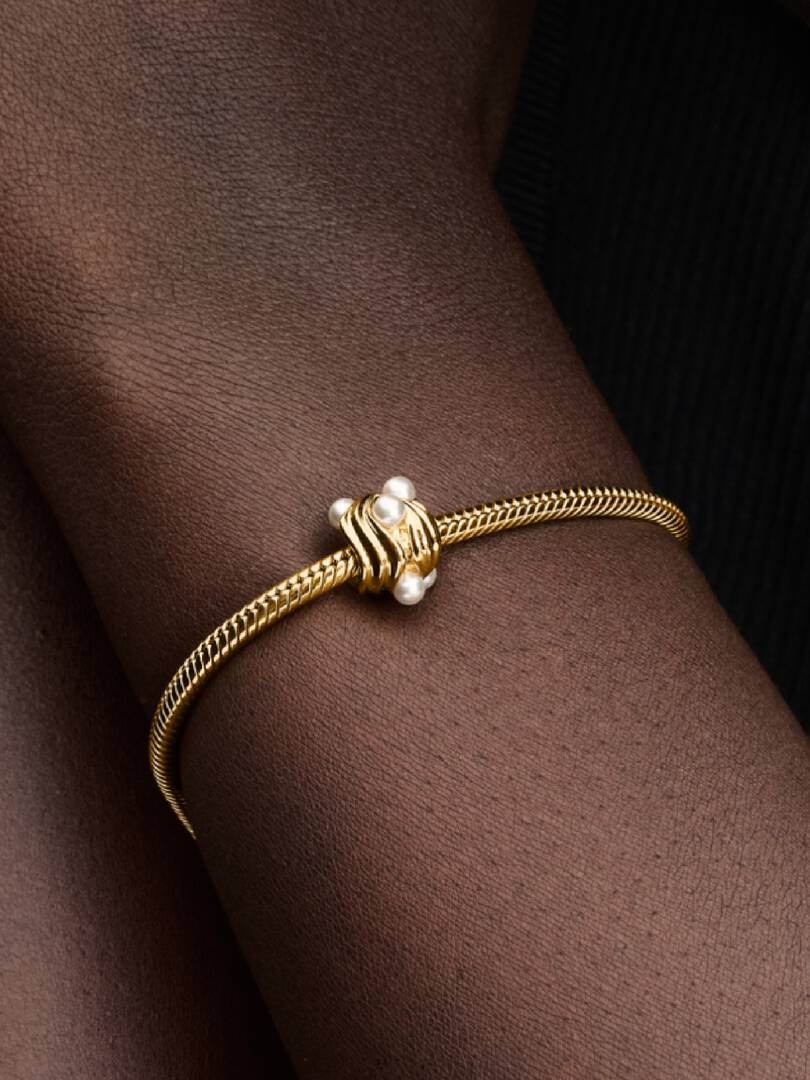 Celebrate the beauty of the ocean with wavy lines and lacquered artificial pearls, evoking a sense of freedom and creative expression.