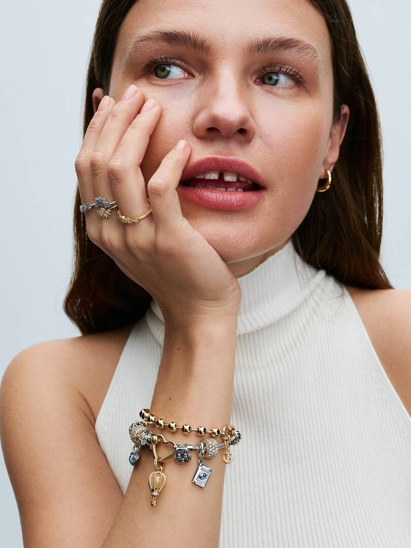 the front and a message is engraved on the underside: “Life is for adventure.” An important and wise reminder in the form of an irreverent charm, this charm also wraps gracefully over any carrier you wear it with for a uniquely playful styling element.