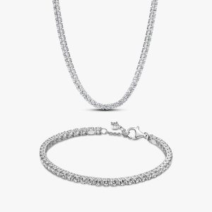 The Always Together Infinity Knot Ring Set symbolizes eternal love and connection. Featuring two delicate rings, one in 14k gold plating and the other in sterling silver, each with sparkling stones at each end.