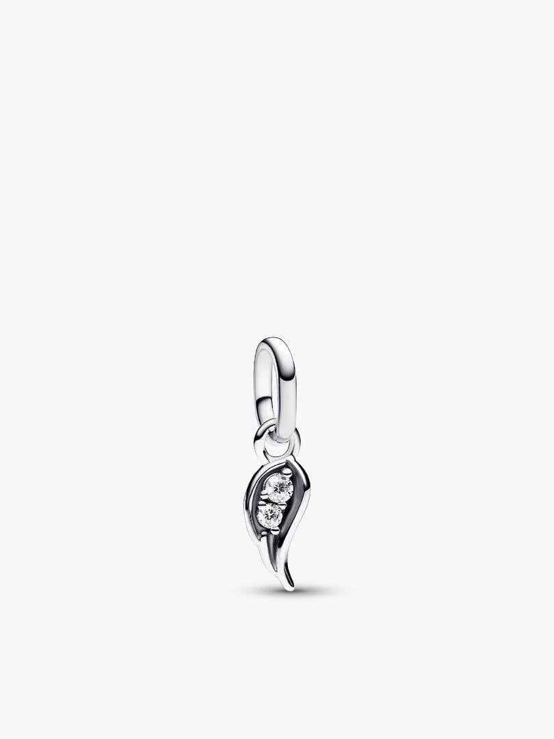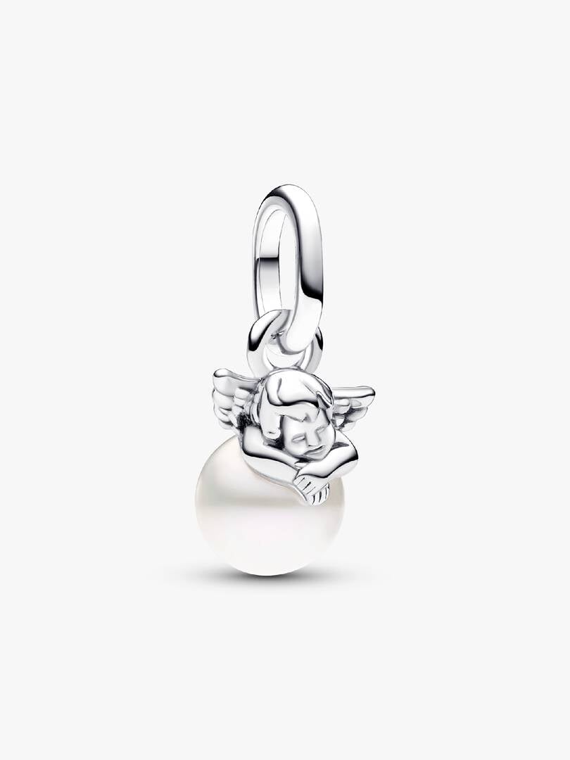The Angel Wings Charm Trio celebrates love and protection. This sterling silver set features a cupid on a pearl, a heart embraced by wings, and a sparkling angel wing—perfect for a spirit-lifting look.
