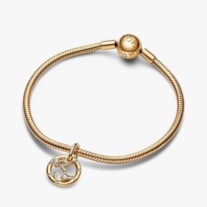 Let the stars guide your look with the brand Aries Zodiac Dangle Charm Bracelet Set. This dangle charm is crafted from our 14k gold-plated unique metal blend, has a circular outer frame and features clear sparkling cub