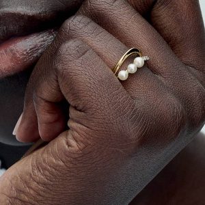 Introducing a new kind of classic with the Baroque Treated Freshwater Cultured Pearl Ring. This ring features one baroque treated freshwater cultured pearl in the center of a slightly wavy 14k gold-plated band with varyi