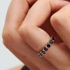 Indulge in timeless elegance with the Black Sparkling Row Eternity Ring from brand . Crafted in sterling silver and plated with 14k rose gold, this ring features 19 black man-made crystals. The eternity row design allow
