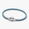 Braided sterling silver box chain with a touch of turquoise textile cord. Elevate your style with a unique combination of fabric and metal.
