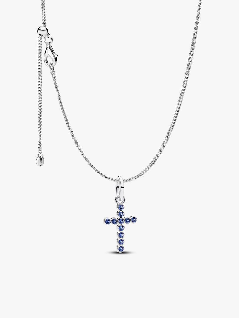 Elevate your style with this symbolic sterling silver set. An adjustable curb chain pairs perfectly with a blue cross charm featuring sparkling man-made crystals — a timeless blend of faith and everyday elegance.