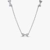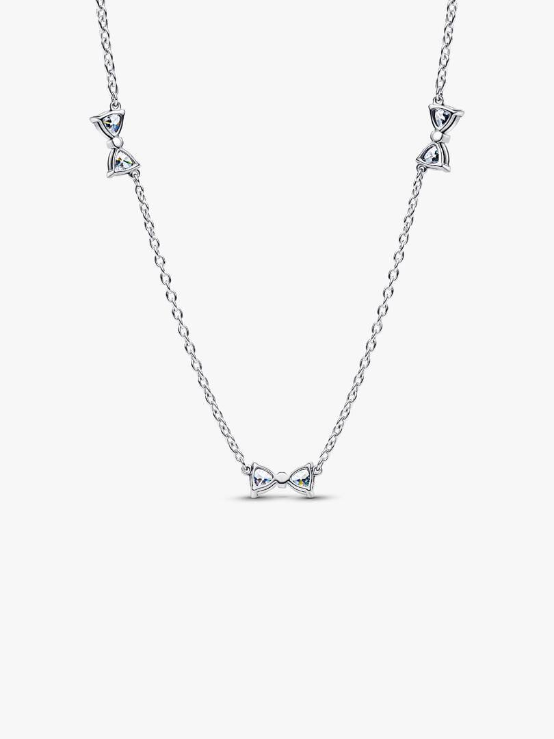 Some ties never come undone. Crafted in sterling silver, this necklace features bows fixed along its chain. Detailed with sparkling cubic zirconia, they symbolize strength and beauty.