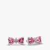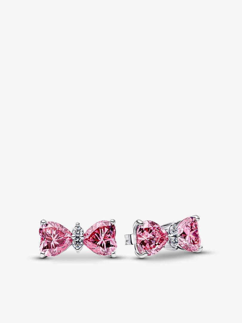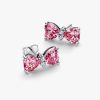 Some ties never come undone. Get wrapped up in our bow stud earrings, made of sterling silver and set with heart-shaped pink and clear cubic zirconia for a delicate symbol of grace.