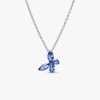 Spread your wings and transform your look with this sterling silver necklace. Set with blue marquise-cut and pear-shaped man-made crystals, a butterfly gracefully dangles from its chain.