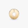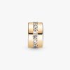 te bracelet on its own to make a statement. Alternatively, offset the warm tone of this piece by teaming it with shimmering sterling silver designs for an eye-catching, contrasting finish. This clip charm features no silicone grip, so it will slide if not styled onto threads (two raised charm dividers).