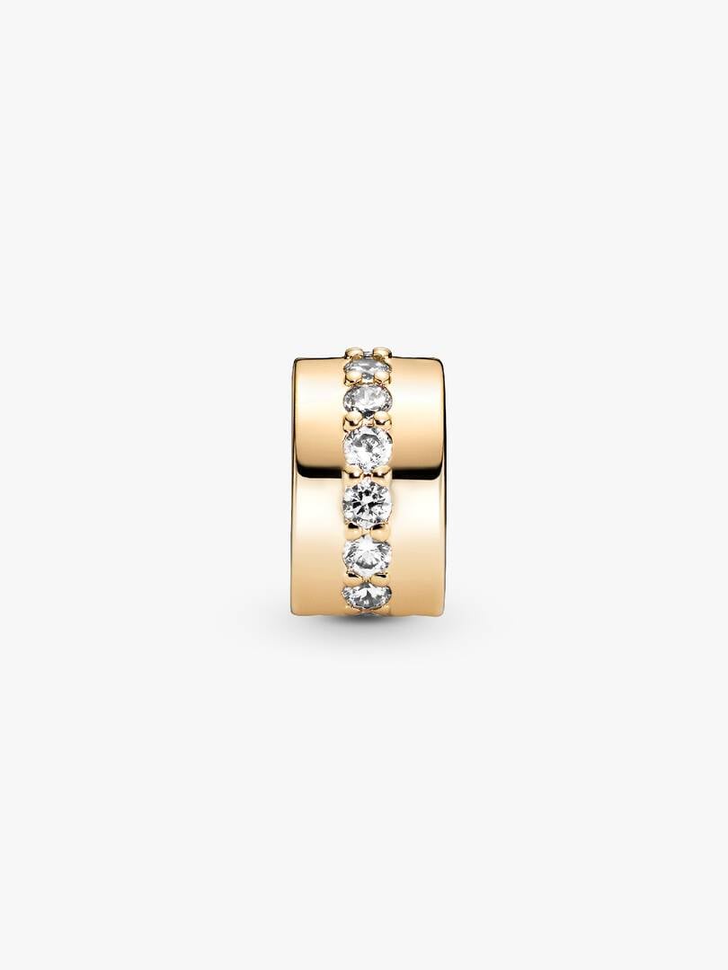 Add a touch of sparkle to your look with the Clear Sparkling Row Clip Charm. Hand-finished in 14k gold, this design features a line of clear cubic zirconia that runs around its middle. Wear this clip charm on your favori