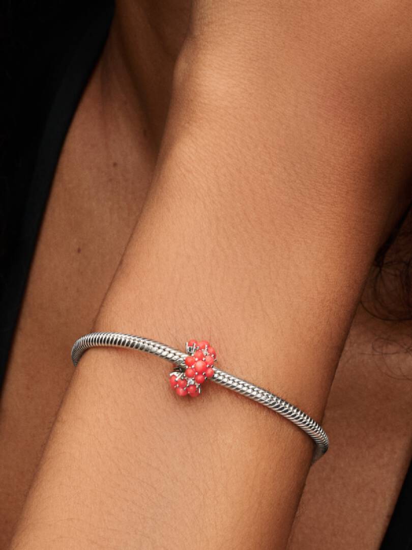 Celebrate the beauty of the ocean with a charm that shines like a summer sunset, featuring clusters of imitation coral and clear cubic zirconia.