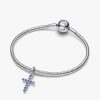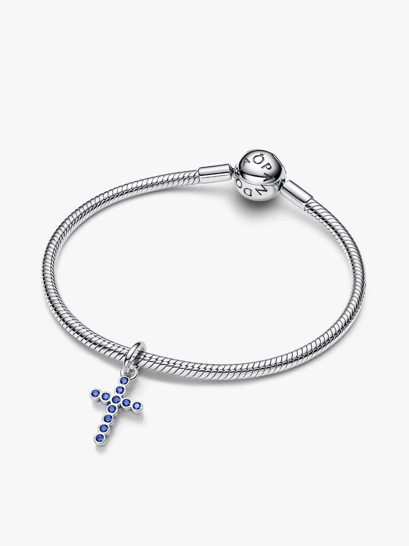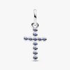 Faith takes shape with this universal symbol of hope and love. Blue man-made crystals form a sparkling cross set in cool sterling silver — a meaningful piece that shines on its own or layers well with others.