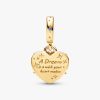 Have a ball every day with the Disney Cinderella’s Carriage & Heart Double Dangle Charm. Inspired Cinderella’s beloved story, this 14k gold-plated charm features two heart-shaped discs. One features Cinderella’s enchante