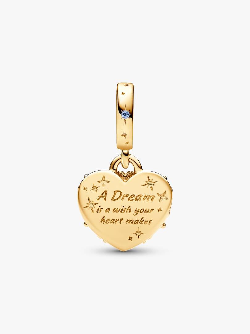 d carriage in intricate openwork, with a blue marquise-shaped stone at the centre. Behind it sits the second heart-shaped disc with glittery blue enamel, and on the back is the engraved message “A Dream is a wish your heart makes.” Wear it on your favourite necklace, bracelet or charm holder as a reminder of the power of following your dreams.