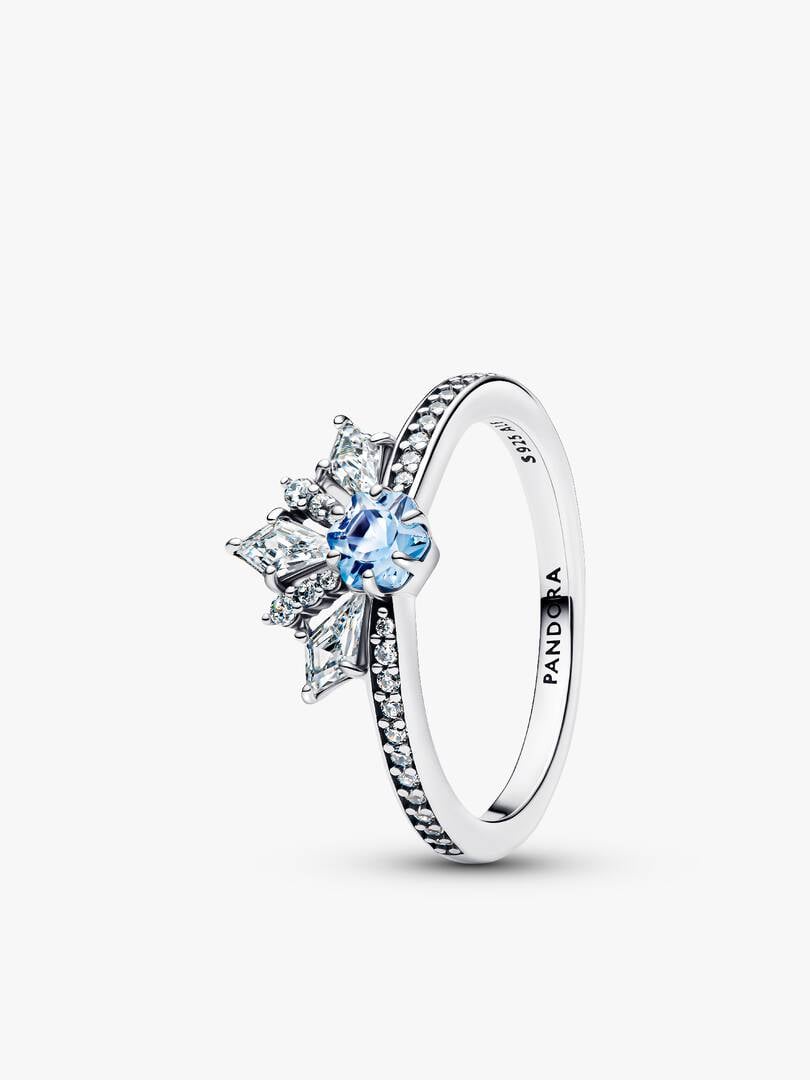 Shine like the Snow Queen. Show your love for Disney’s Frozen with this striking sterling silver ring designed in a tiara constellation and featuring blue and clear stones.