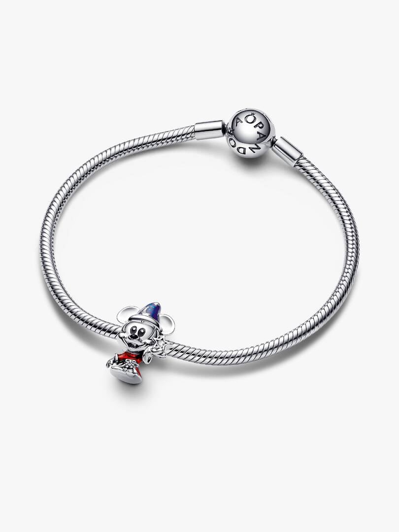 One of Disney’s most beloved characters returns with the Disney Sorcerer Apprentice Mickey Charm. This charm features hand-applied glittery enamel details and shining star motifs inspired by Disney’s much-loved Fantasia.