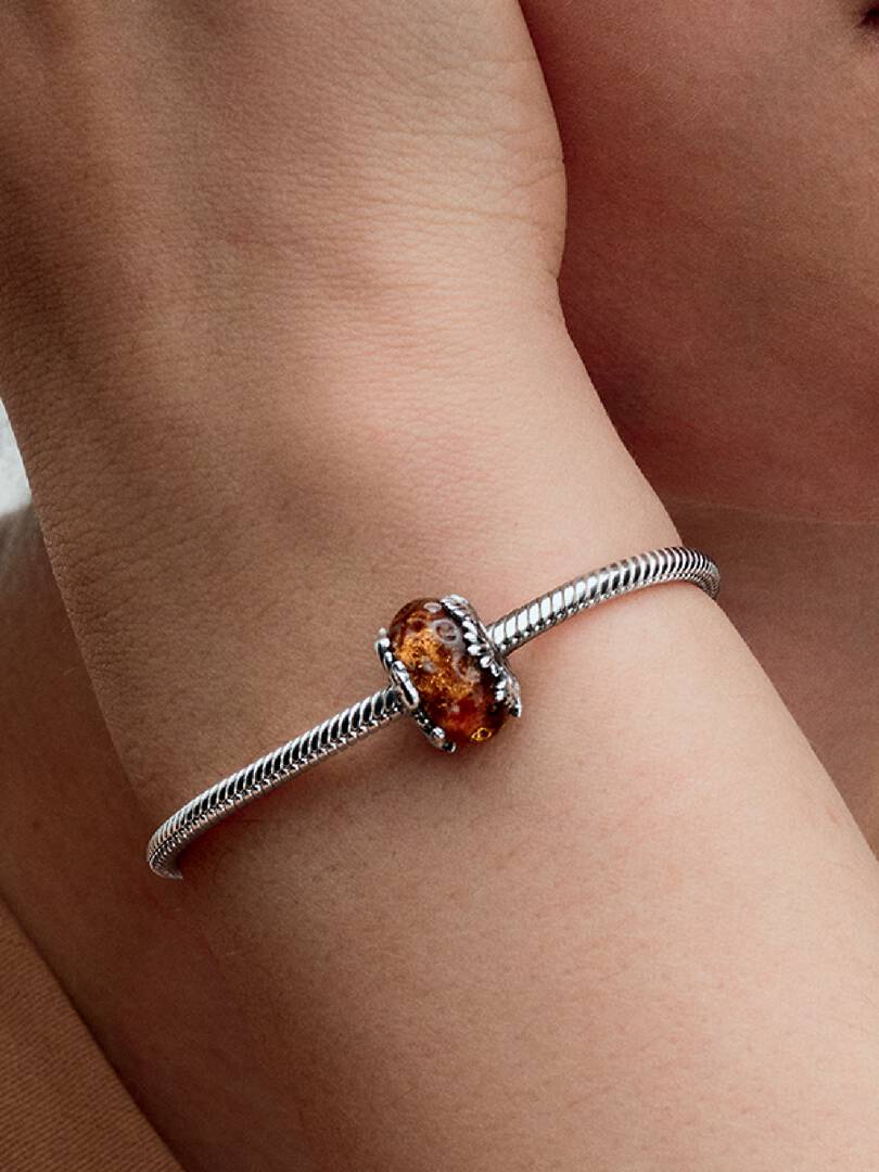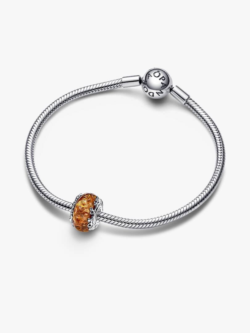 Celebrate the life’s natural cycles with the Disney The Lion King Murano Glass Charm. Crafted of sterling silver, this charm features two kinds of Murano glass to create a rich, glittery effect. One side of the charm’s c
