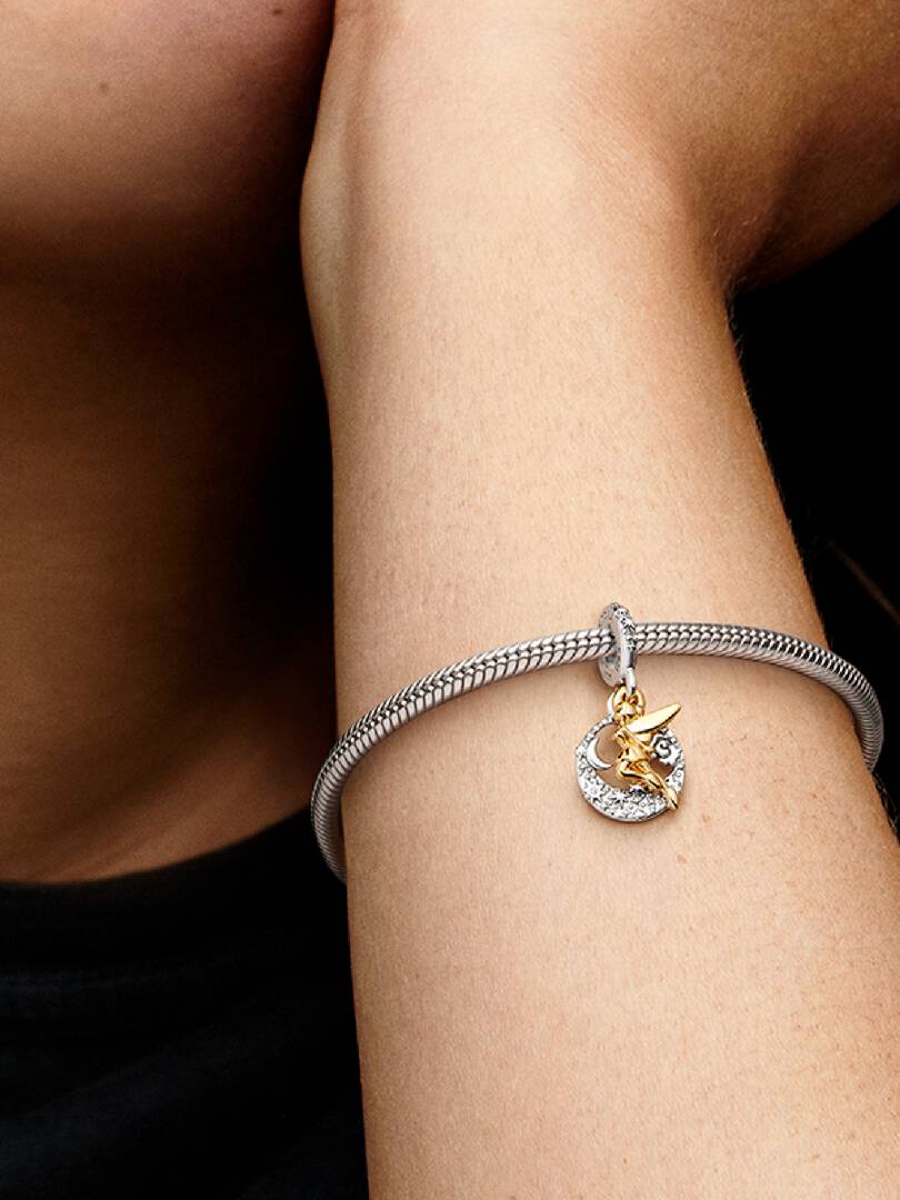 The next best thing to pixie dust, add our Disney Tinker Bell Celestial Night Dangle Charm to your collection for a touch of everyday magic. This two-tone charm is hand-finished in sterling silver and 14k gold plating an