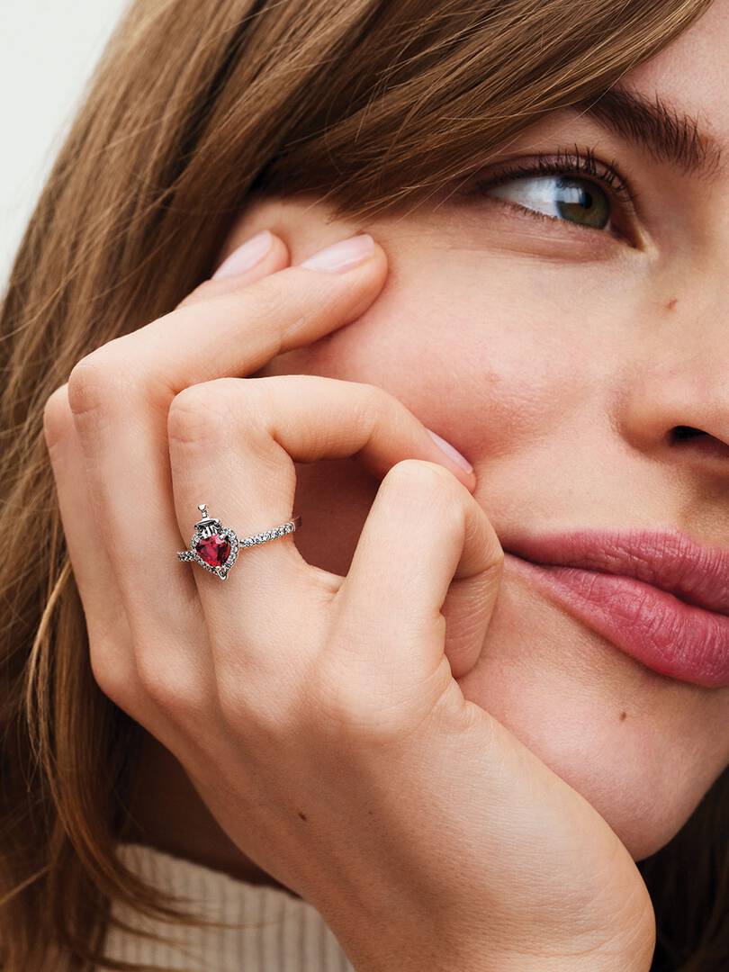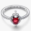 Mirror, mirror on the wall, which is the fairest ring of all? Channel the Evil Queen from Disney’s Snow White with this heart shaped ring that has been pierced with a dagger. Set with a heart-shaped fuchsia rose man-made