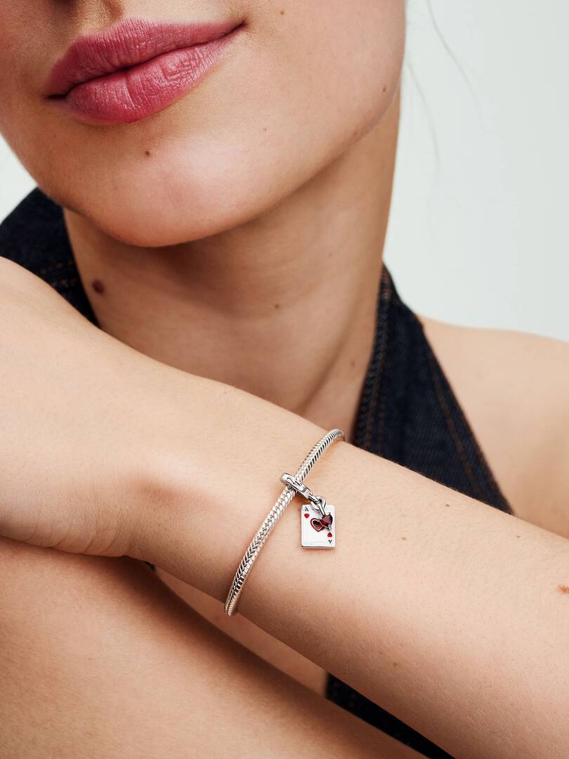 Paint the world red with our charm inspired by Disney’s Alice in Wonderland’s villainous queen. Set in cool sterling silver with hand-applied enamel details, the charm also features a red man-made crystal heart and the e