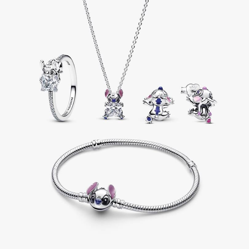 Complete your ‘ohana with the ultimate Disney’s Lilo & Stitch jewelry set in sterling silver. Featuring stud earrings, a collier necklace, ring and snake chain charm bracelet, all inspired by your favorite alien.