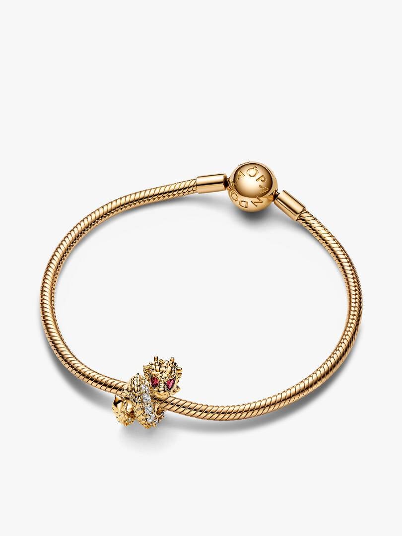 scales down its back and set with two pear-shaped, red, man-made crystal eyes. Complete with the iconic 14k gold-plated brand Moments Snake Chain Bracelet, this set lets you carry all the qualities of the dragon into your year ahead.