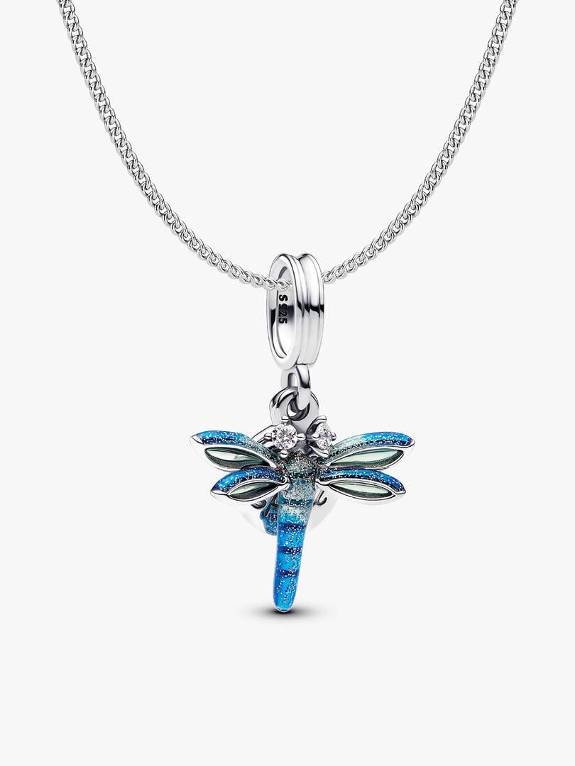 Embrace change and live in the moment with the Dragonfly Charm Necklace. This set combines a sterling silver dragonfly charm with a versatile chain. The charm features transparent enamel wings, a holographic glitter body