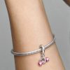 Wear your love for fitness with the Dumbbell & Heart Dangle Charm. Hand-finished in sterling silver, this charm features a dumbbell sitting inside an open heart shape. The dumbbell is covered in hand-applied pink enamel,