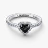 Romance meets edge in the Elevated Black Heart Ring. Sparkling clear pavé surrounds a black heart-shaped man-made crystal in this sterling-silver ring. The black stone is raised in the center of a pavé outline and the to