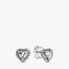 Is there a more romantic way to express your love and appreciation than to give your loved one a set of heart-shaped stud earrings? These timeless and dreamy sterling silver earrings feature an elevated cubic zirconia se
