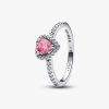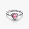 Embrace a dash of cool-toned color with the Elevated Pink Heart Ring. Made of sterling silver, this ring centers on a raised heart-shaped pink stone surrounded by pavé. A row of pavé along the top half of the band adds a
