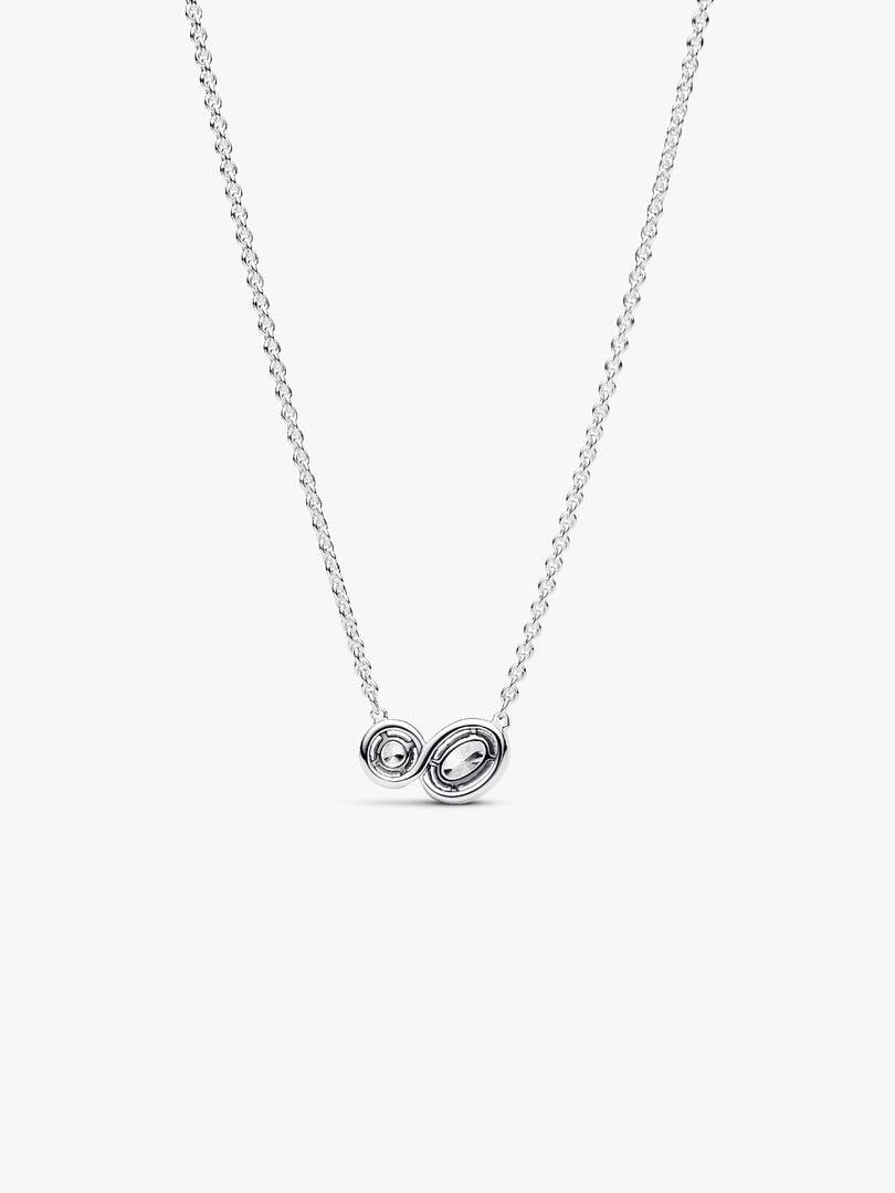 Embrace the power of two with the Embracing Halo Necklace. This sterling silver collier necklace features two sparkling stones –one round and one oval – connected by a pavé halo. An additional stone dangles near the neck