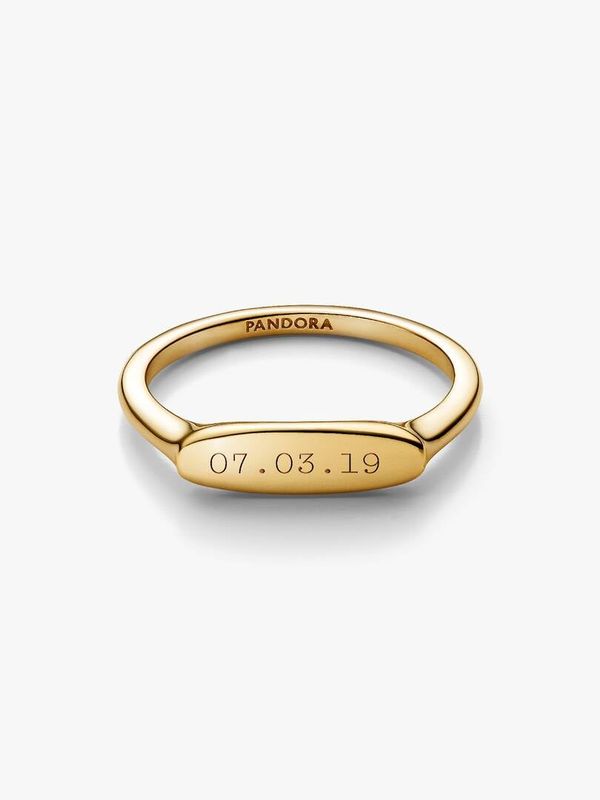 Leave your mark on personal style. Crafted in 14k gold plating, this ring features a blank bar canvas ready to customize with an engraving.