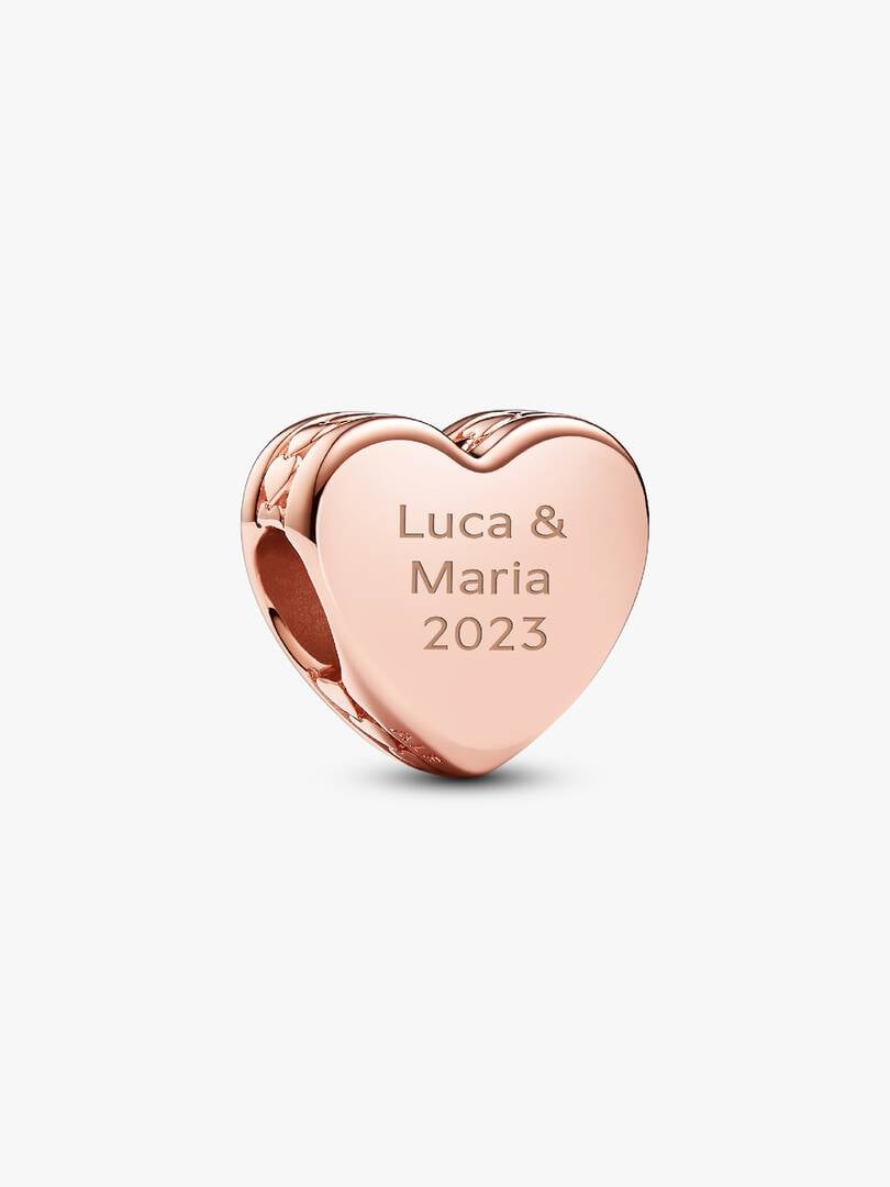 Show them the shape of your heart with the enduring symbol of love. Plated with 14k rose gold, this Engravable Heart Charm works on brand Moments bracelets or the brand O Pendant, a carrier for your favorite charms.