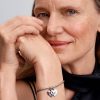 This engravable magnifying glass charm is a unique piece with a special message of love. Crafted from sterling silver, this double dangle charm features one heart with a functional magnifying glass engraved with “Love is