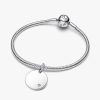Minimalist style that makes a brilliant statement. Our sterling silver polished disc pendant features a radiant lab-grown diamond in a star-shaped setting and is ready to engrave and personalize your way.