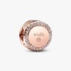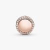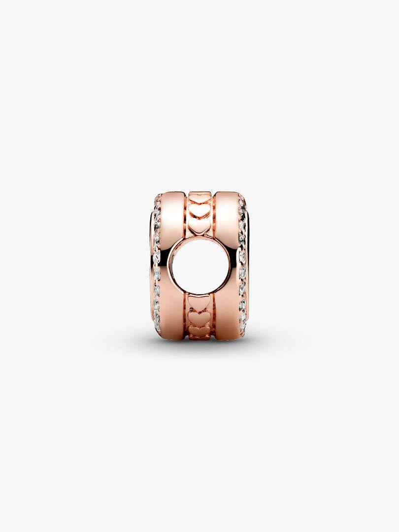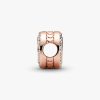 Add this simple-yet-sleek charm to your brand collection. This polished Engravable Sparkling Button Charm is hand-finished in 14k rose gold plating, and features 52 bead-set round brilliant-cut clear cubic zirconia sto