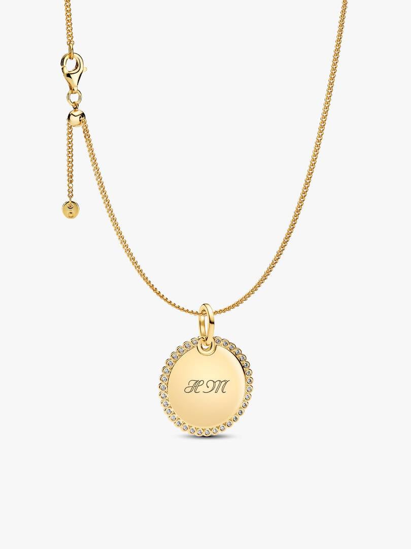 Make space for your story. Designed for longer messages, our oversized 14k gold-plated round tag pendant features more room to say what matters. Pair with our adjustable curb chain for maximum impact and meaning.