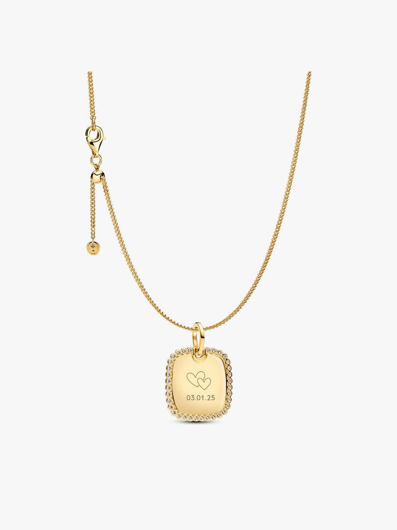 Make space for your story. Designed for longer messages, our oversized 14k gold-plated square tag pendant features more room to say what matters. Pair with our adjustable curb chain for maximum impact and meaning.