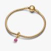 Wear a symbol of forever, that’s personal to you. This 14k gold-plated dangle charm is made up of a triple knotted circle that intertwines to resemble an infinity sign. The twist carries a faceted phlox pink man-made cry