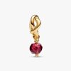 Wear a symbol of forever, that’s personal to you. This 14k gold-plated dangle charm is made up of a triple knotted circle that intertwines to resemble an infinity sign. The twist carries a faceted true red man-made cryst