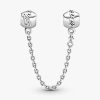 Keep charms in check while showing the importance of family with our safety chain for brand Moments bracelets. Cast from sterling silver, the charms are detailed with a swirling script that reads “Family” and “Forever.