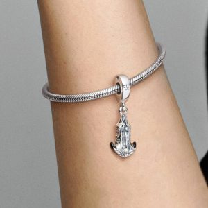 ” The safety chain charm is fitted with swivel ends to prevent it from tangling. Thread one side onto your bracelet before adding charms, connecting the unattached side of the safety chain once your charms are in place.