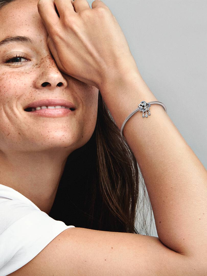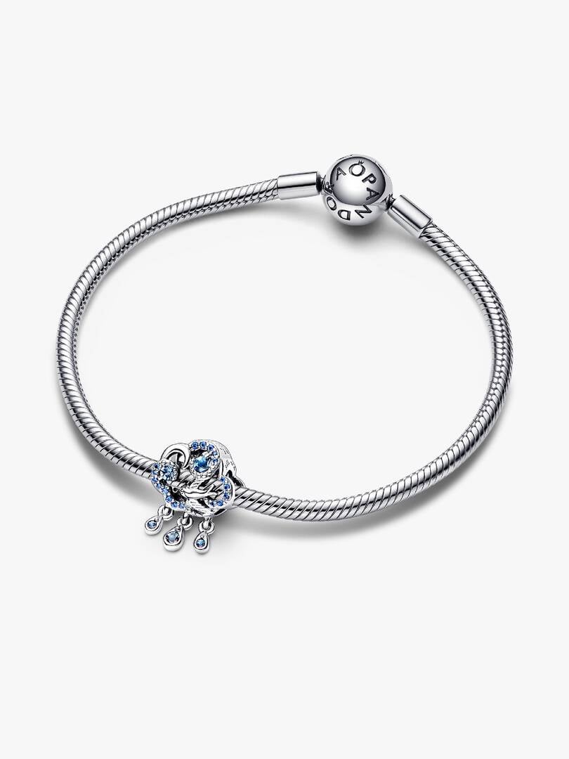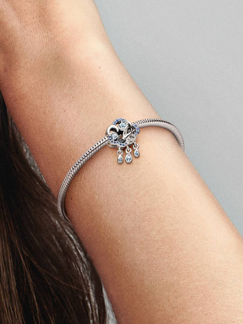Immerse yourself in spring with our Cloud & Swallow Charm. This sterling silver charm features an intricate swirling cloud scene detailed with soaring swallows and sparkling pavé in varying shades of blue. Three raindrop