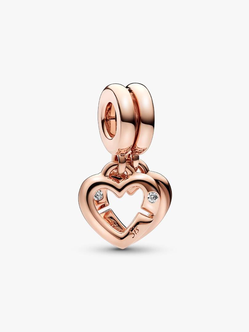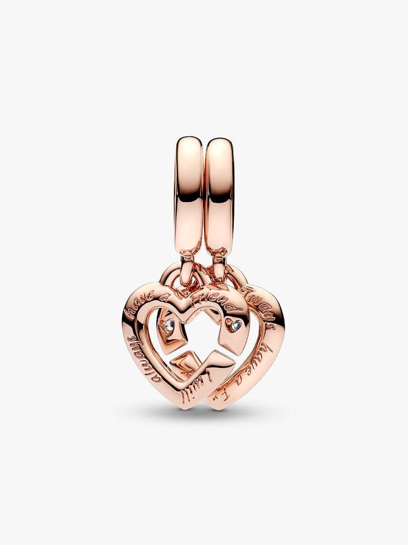 FINAL SALE – Linked Sister Hearts Split Dangle Charm | Rose gold plated