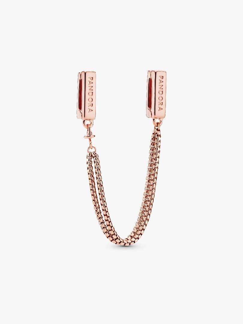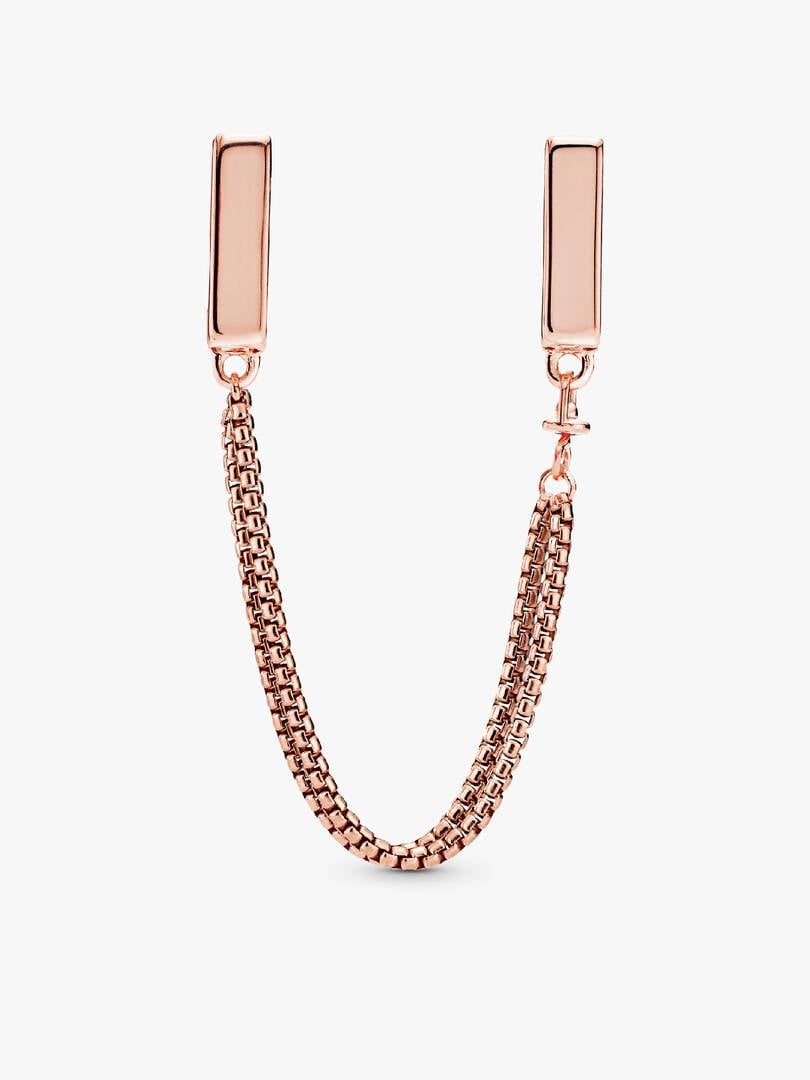 Add the finishing touches to your styling with this Safety Chain Clip Charm for brand Reflexions bracelets. Minimally detailed with two chains in varying lengths that create an elegant draped effect, the 14k rose gold