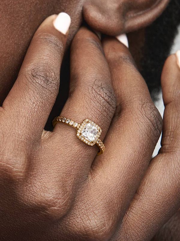 FINAL SALE – Square Sparkle Halo Ring | Gold